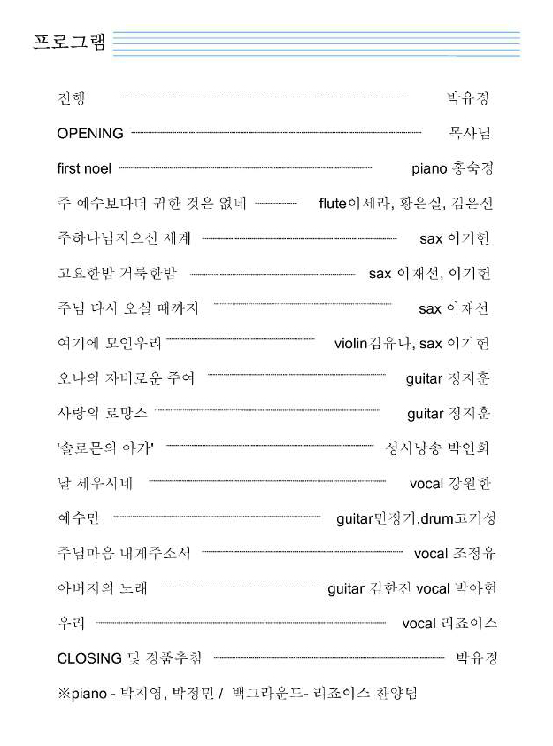 * 예배가 끝난 이후 4시에 바로 음악회를 가질 예정입니다.
