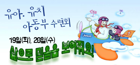 유아, 유치 아동부 수련회가 19일(화), 20일(수)에 있습니다. 10시30에 시작하여 4시까지 진행됩니다.