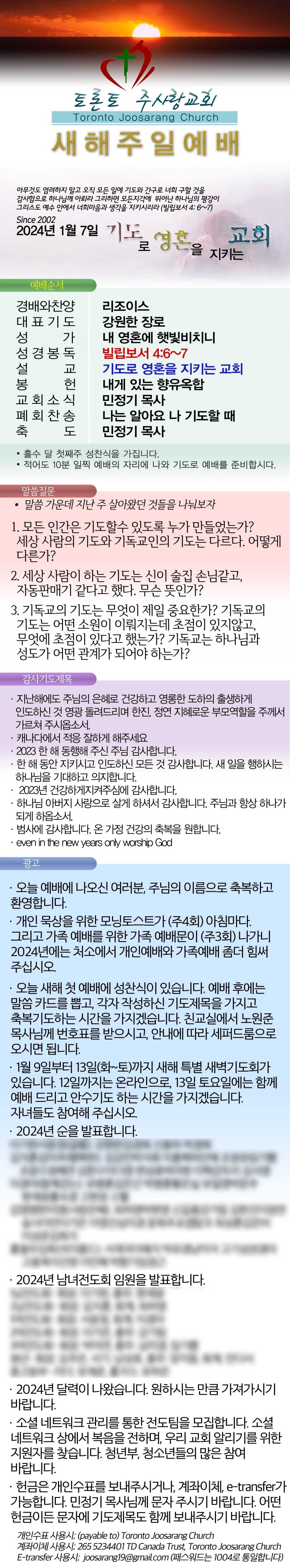 2024.01.07 새해 첫 주일주보
