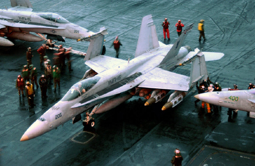 [ 미국 항공모함 탑재 된 주력 대지 공격기인 F/A-18 ]