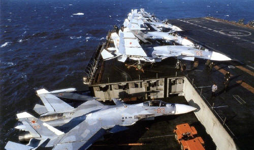 [ 러시아 항모 쿠즈네쵸프에 탑재된 Su-33 함재기는