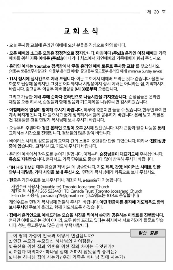 날짜: 2020.05.17 글쓴이 : 민정기 목사 | 교회소식