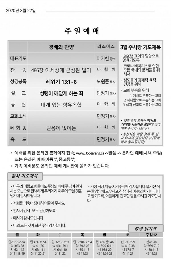날짜: 2020.03.20 글쓴이 : 민정기 목사 | 온라인 예배(아침,주일)